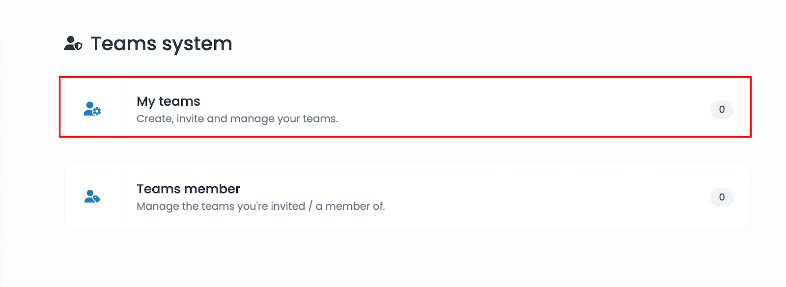 Open the administrator account. Once inside, click on the name of the account at the bottom of the left sidebar to display the Setup menu. Select the Teams System option.