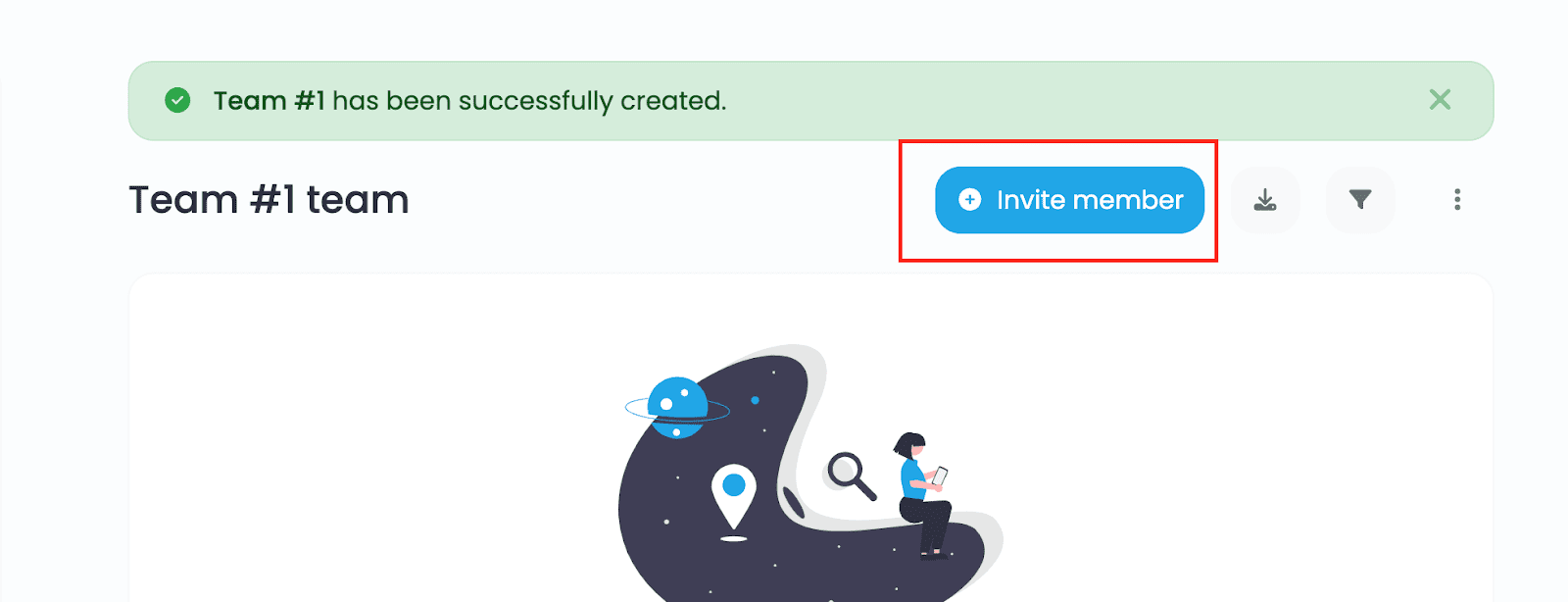 Inside the Team page, click on the Invite Member button.