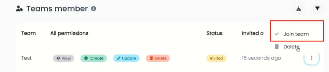 You will see the invitation to join the team. Tap on the three dots menu and click on Join Team to accept it.