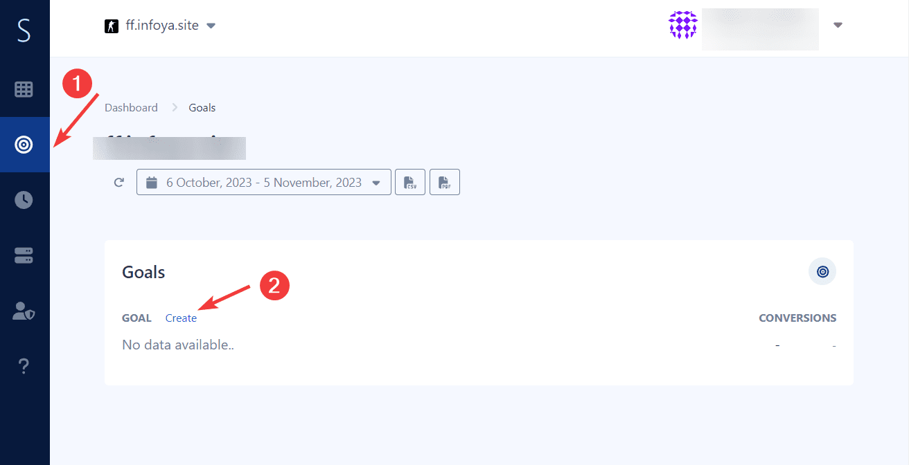 1.- Go to the “Goals” option and click on “Create.”