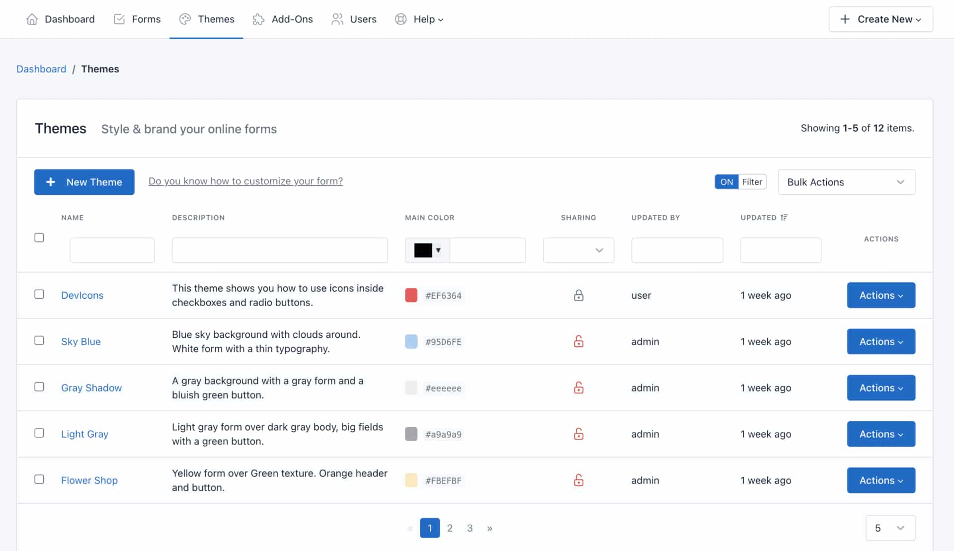 - Click the Actions button of the Theme to edit