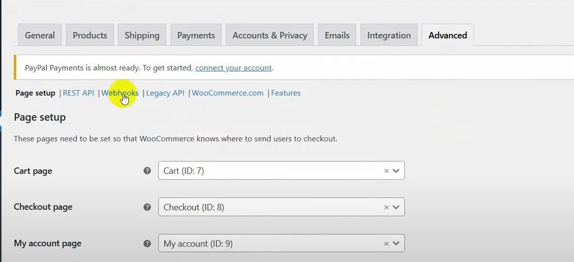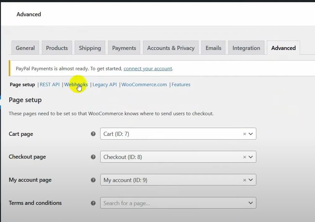 Click on the Advanced tab and select Webhooks.