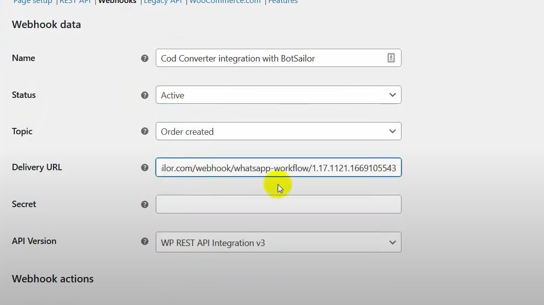 Paste the webhook URL and save.