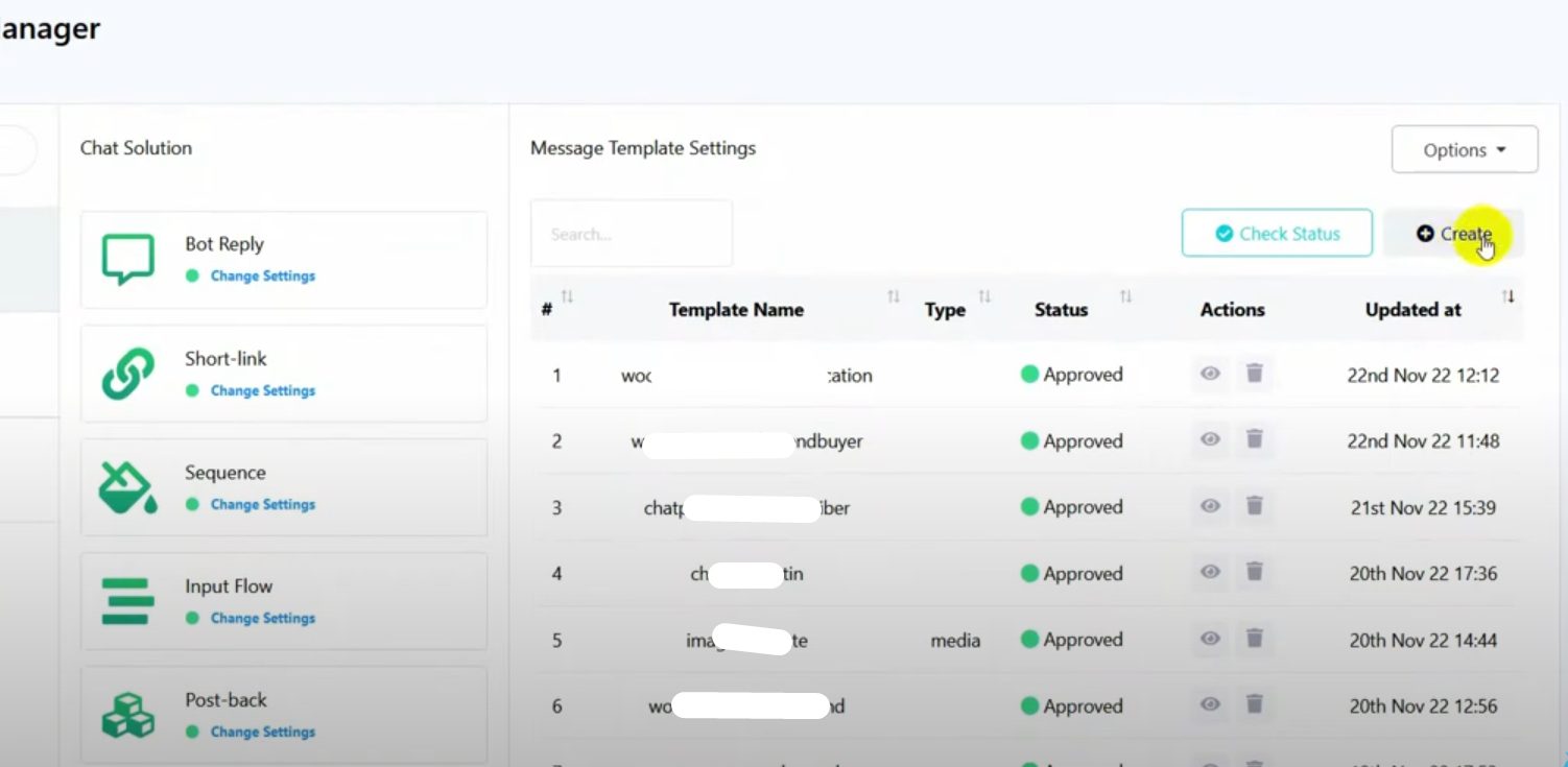 Go to Bot Manager and select Message Template