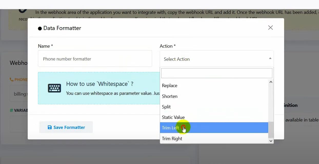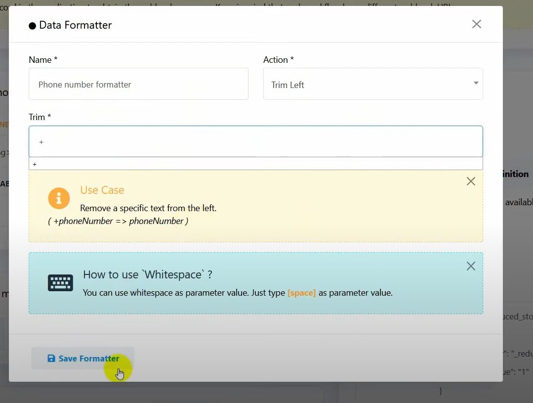 Click on New, name the formatter, and select the action Trim Left.
