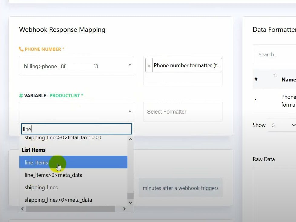 Go to Webhook Response Mapping and select the phone number (under billing).