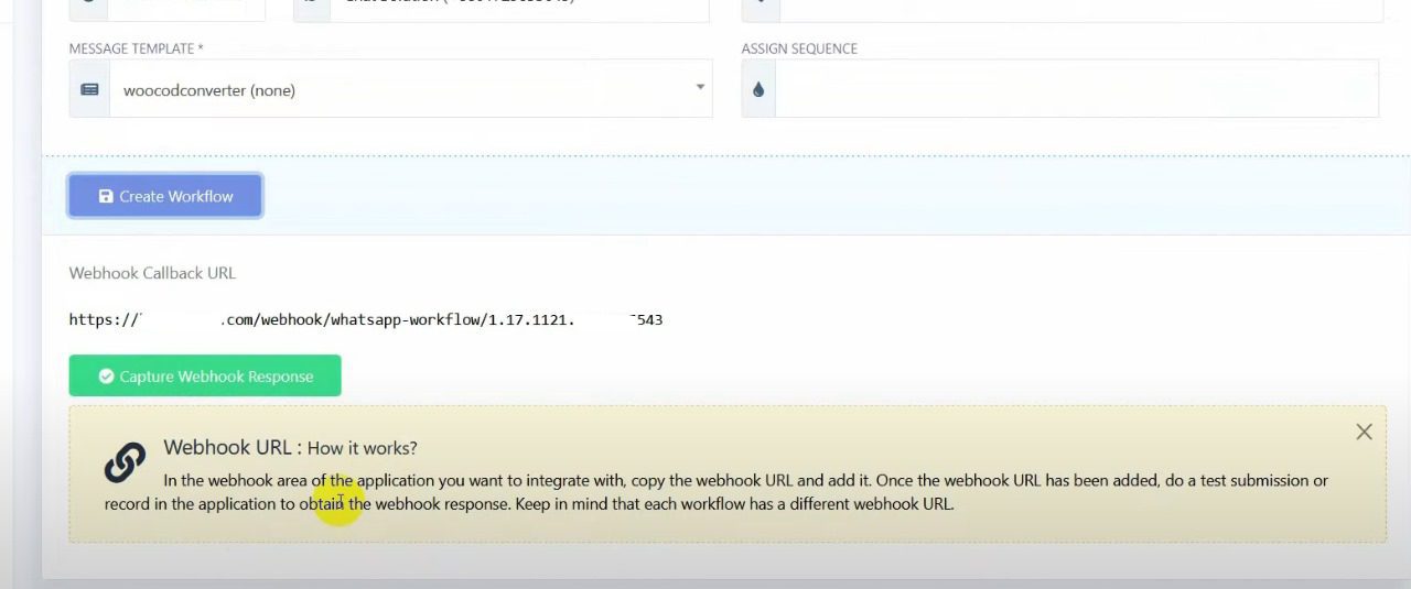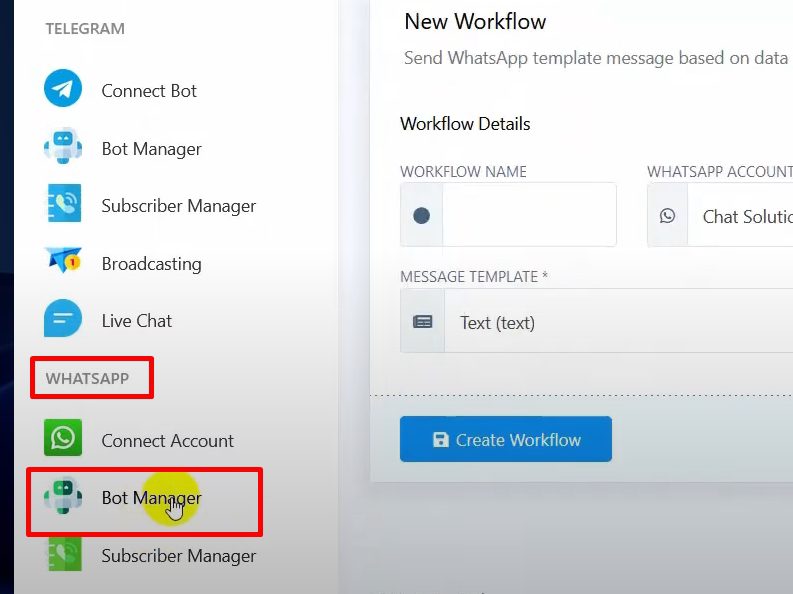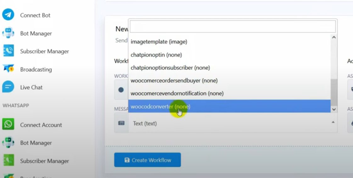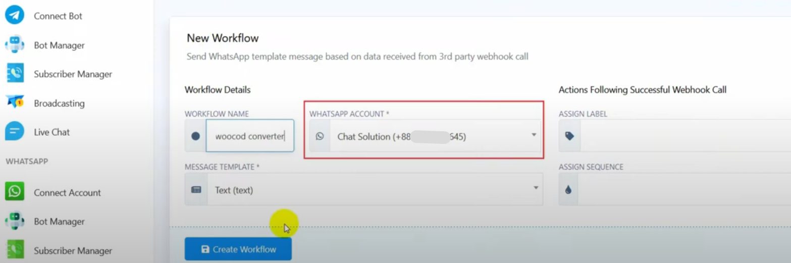 Select the message template you just created and click on Create Workflow
