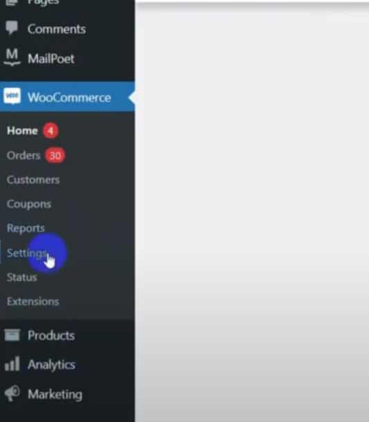 In the WordPress admin dashboard, go to WooCommerce and then Settings.