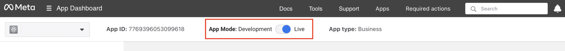 Open Meta Developers and navigate to WhatsApp > Configuration. At the top of the page, look for a toggle switch labeled Development on one side and Live on the other. If the switch is set to Development, your app is not live.