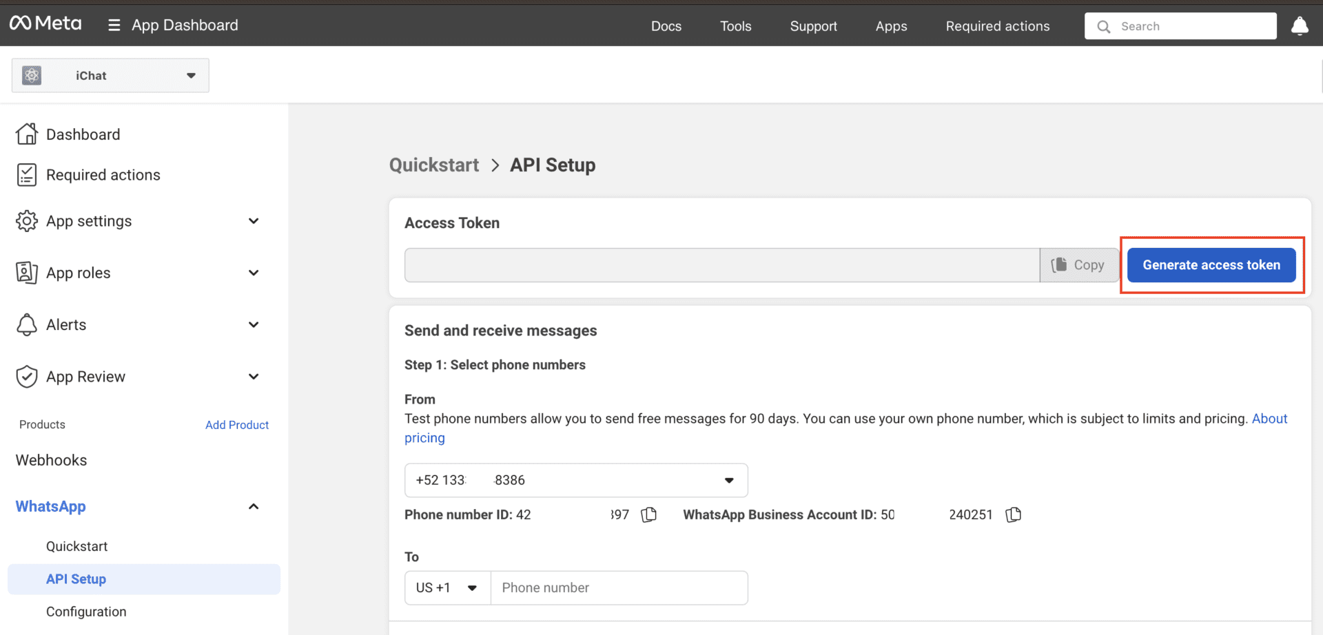Ignore that message from Meta and focus on finishing the connection process instead. Go to the Meta Developers platform, select the app you created for your chatbot, and navigate to WhatsApp > API Setup.