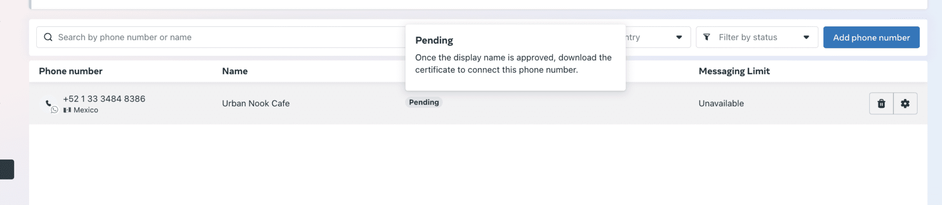 Look for your WhatsApp number and check the Status. It should say Connected. If it says Pending, this is the cause of the issue.