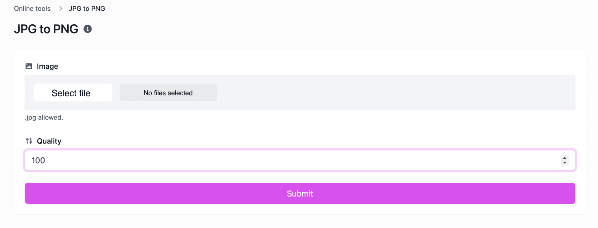 On other cases, for example the image converters, you must first upload the file you wish yo work with before clicking on ‘Submit’.