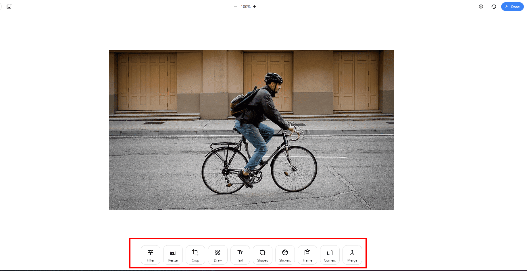 Navigate to the editing tools: After uploading your image and preparing it according to your needs, scroll down to the bottom where various editing tools are numbered.