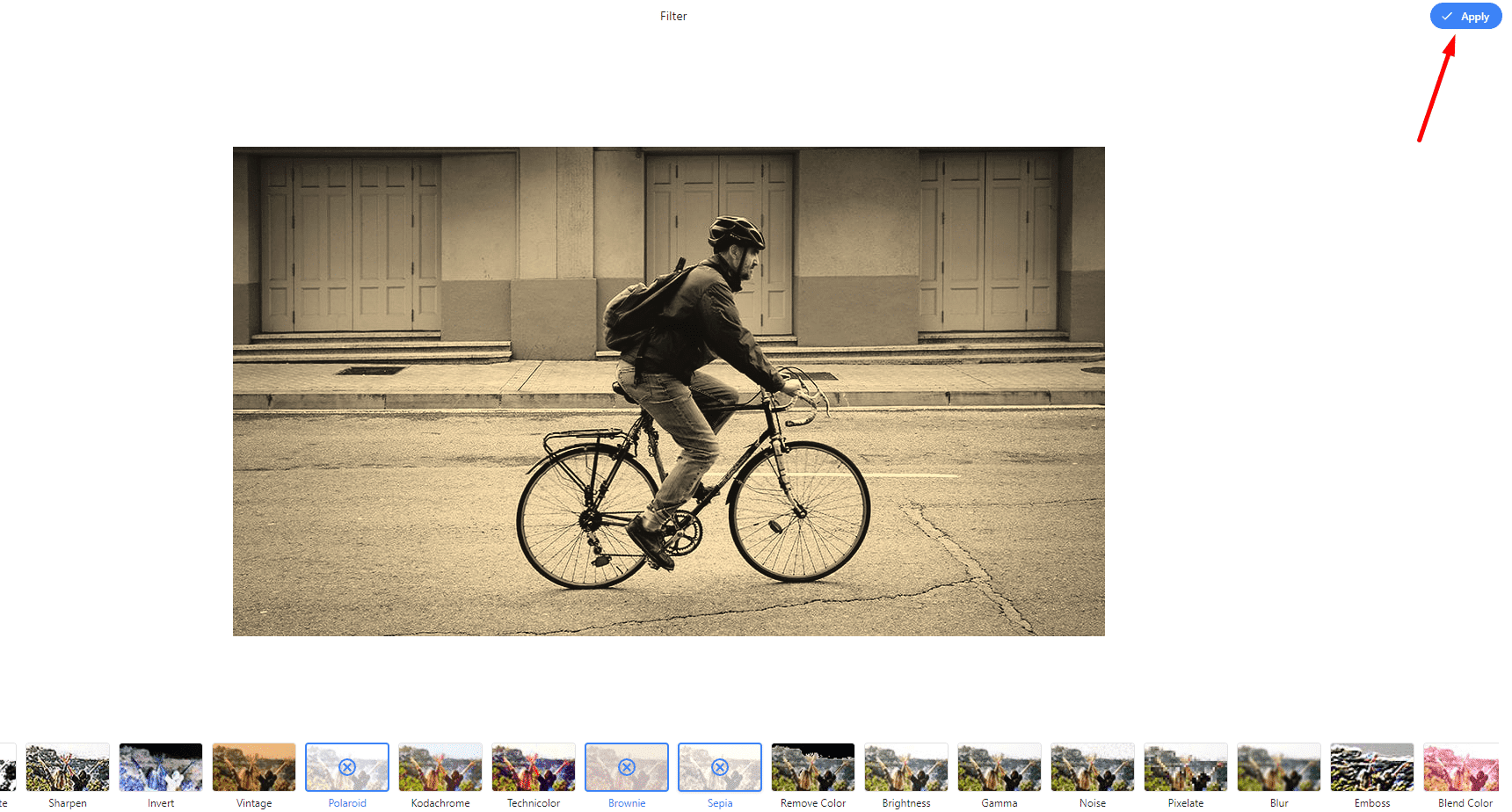 Click on “Apply”: After applying the desired filter(s), remember to click on the top right button labeled “Apply” to save the changes to your image.