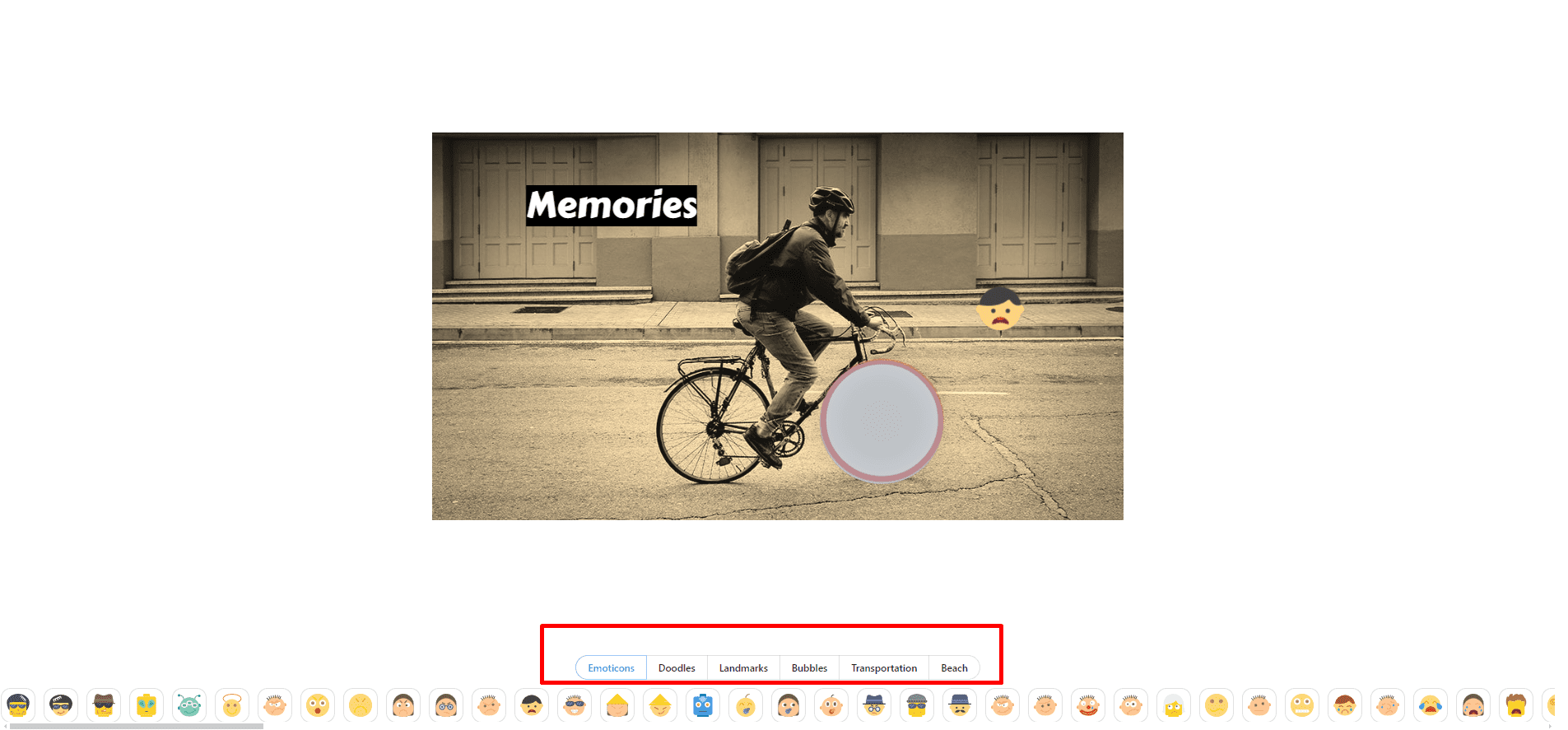 Explore different categories: Depending on your needs, you can find various categories such as emoticons, doodles, beach, and more. Browse through the options and select the sticker that best fits your image.