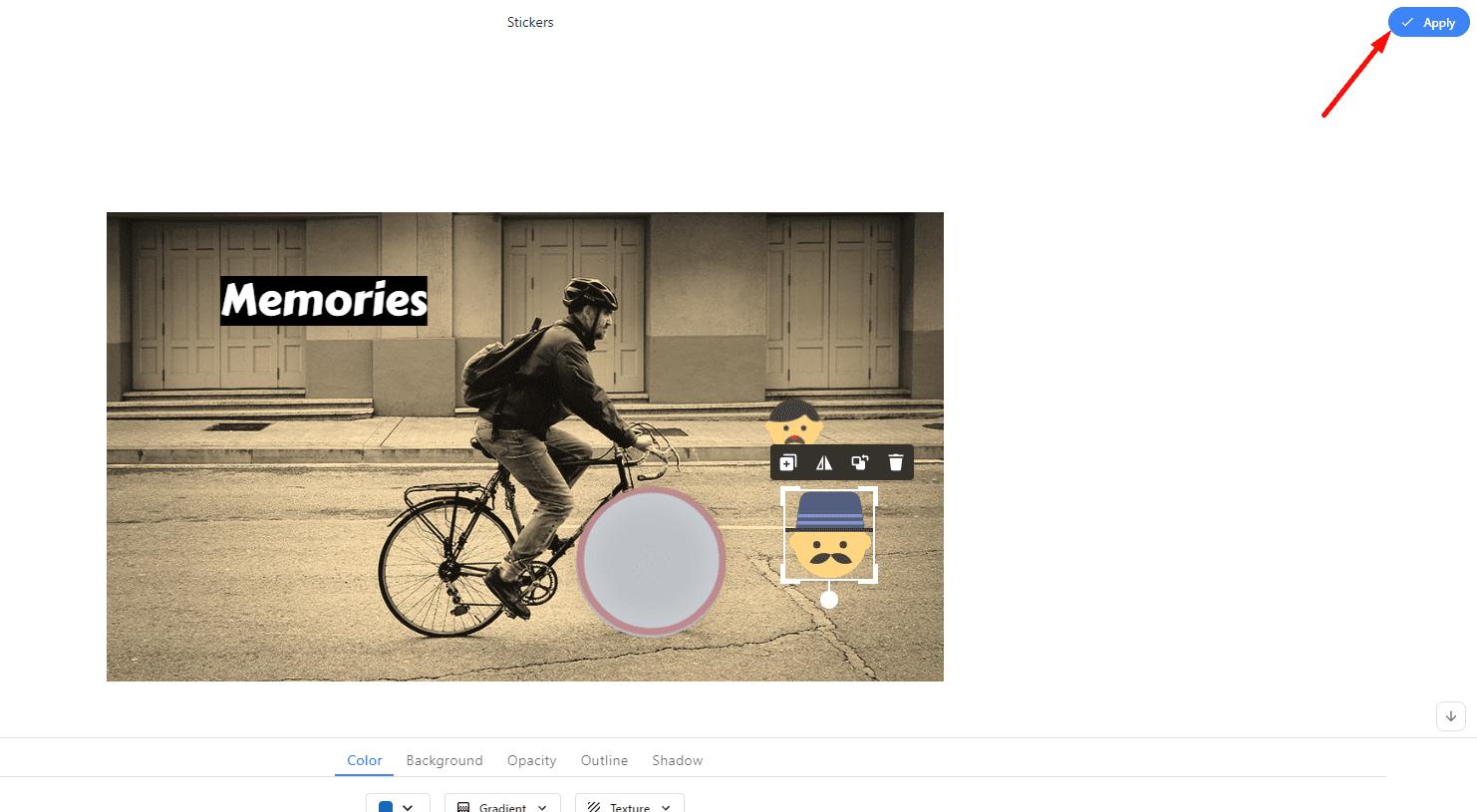 Click on “Apply”: After selecting and customizing the desired sticker, remember to click on the top right button labeled “Apply” to save the changes to your image.