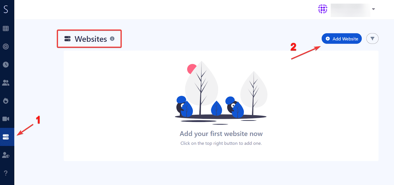 2.- Go to the website’s page and click the “Add Website button”. A simple form will appear.