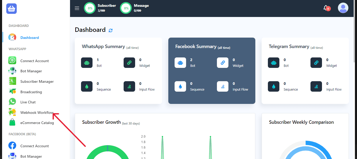 Webhook workflows offer a dynamic way to connect your WhatsApp messaging with events from third-party systems, such as eCommerce platforms like WooCommerce or Shopify. This feature enables you to send automated WhatsApp notifications to your customers for specific triggers, like new orders or updates.