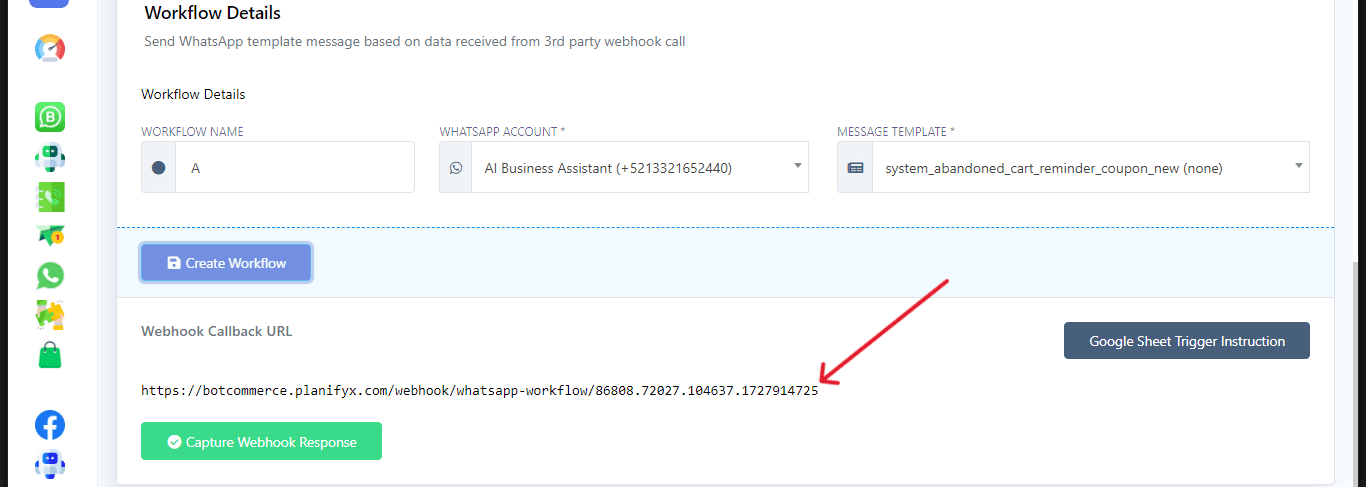 Finalize by clicking on Create Workflow, which generates a Webhook Callback URL.