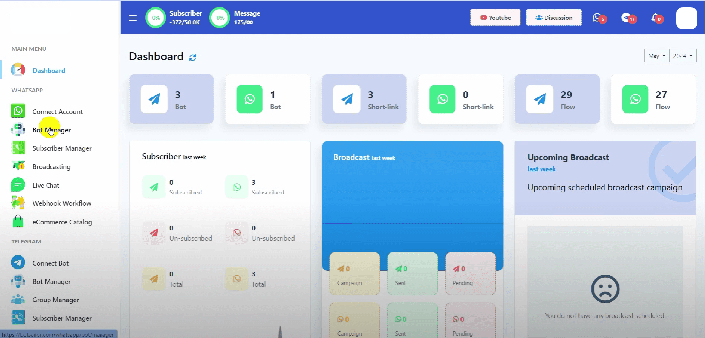 From the BotCommerce dashboard, go to the WhatsApp bot manager.