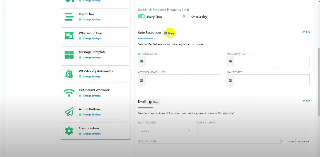 If you have multiple bots, go to the configuration and click on the “New” button in the Autoresponder section to add a new Autoresponder.