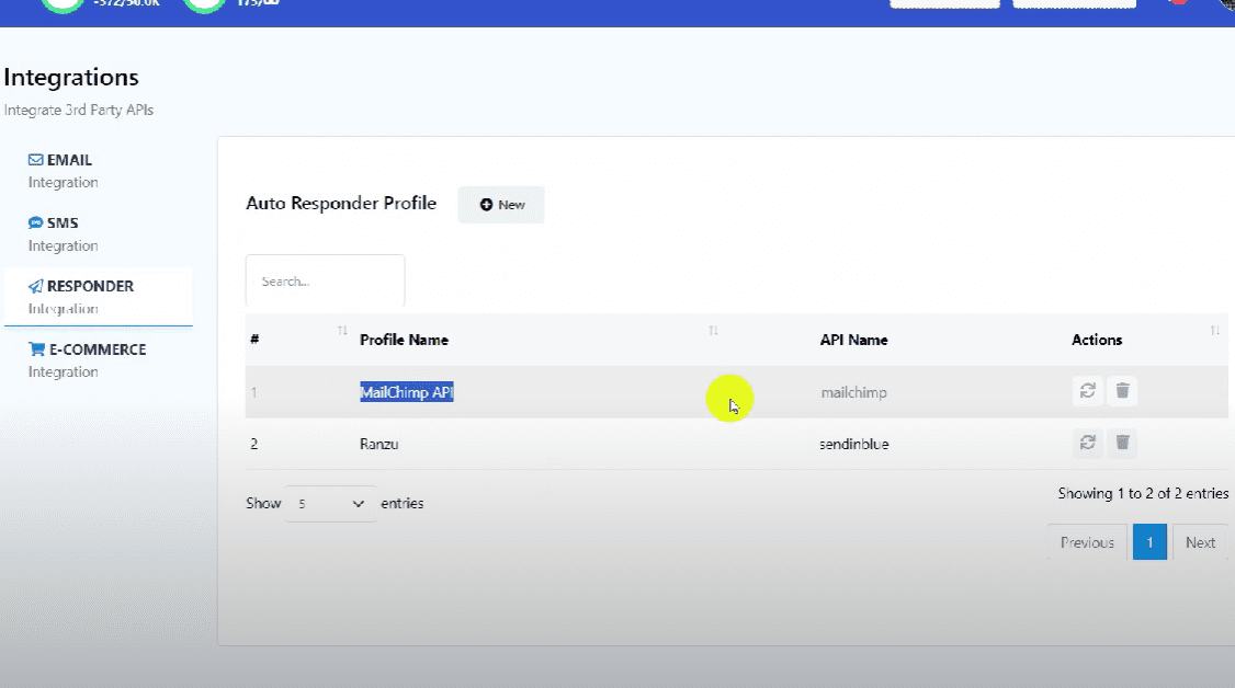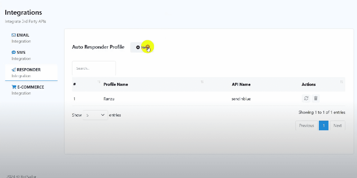 From the Autoresponder profile page, click on the “New” button.