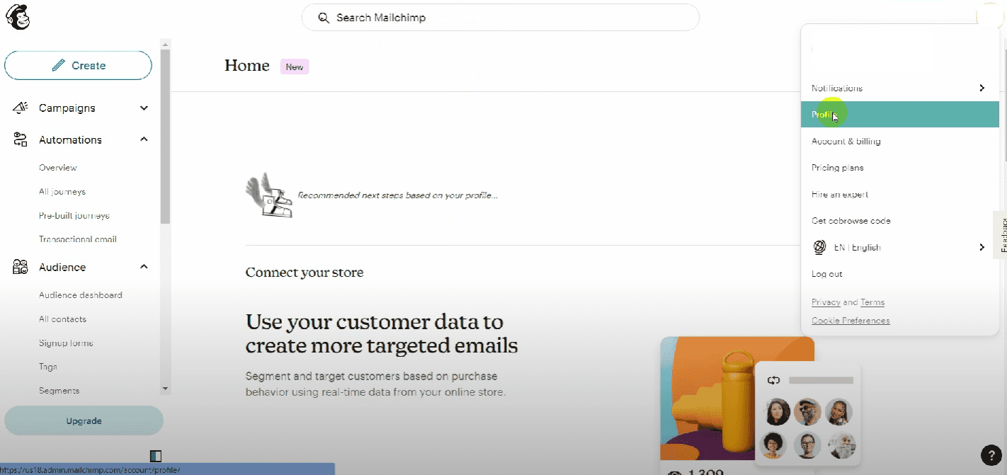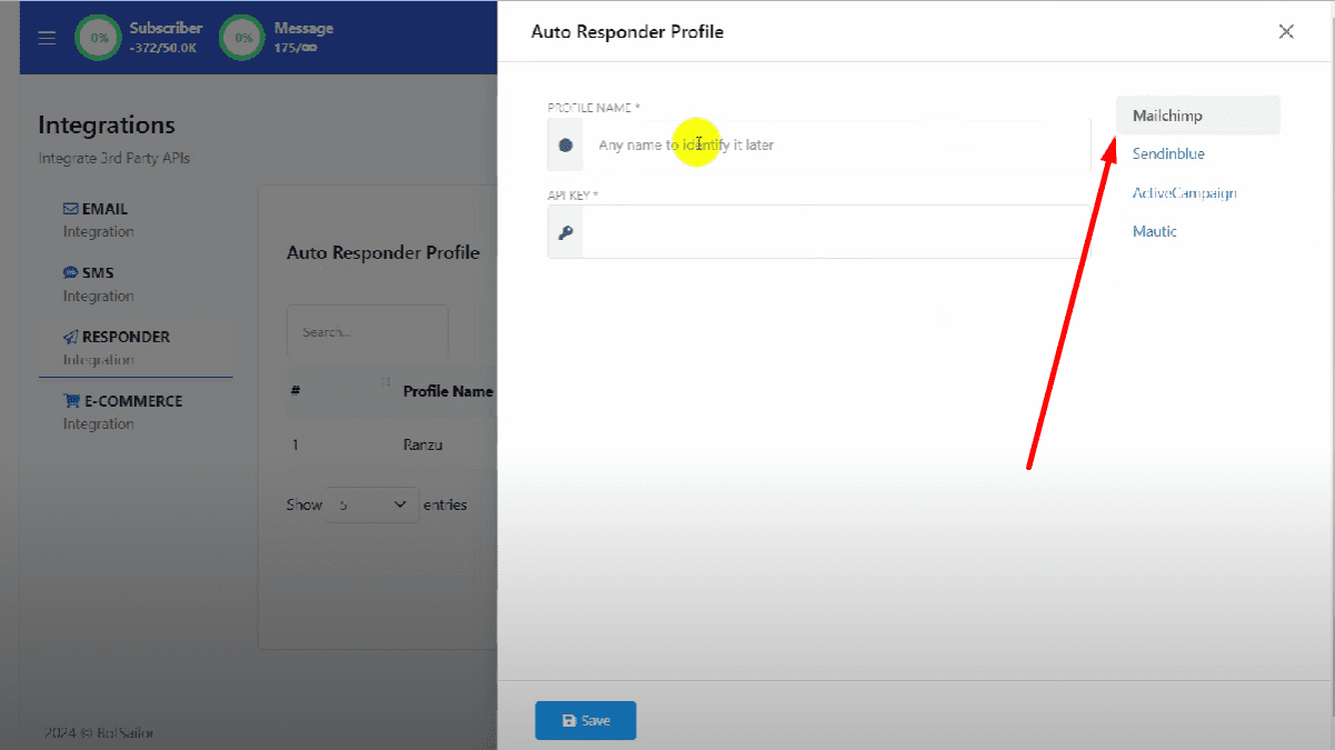 On the right side, select the Mailchimp option.