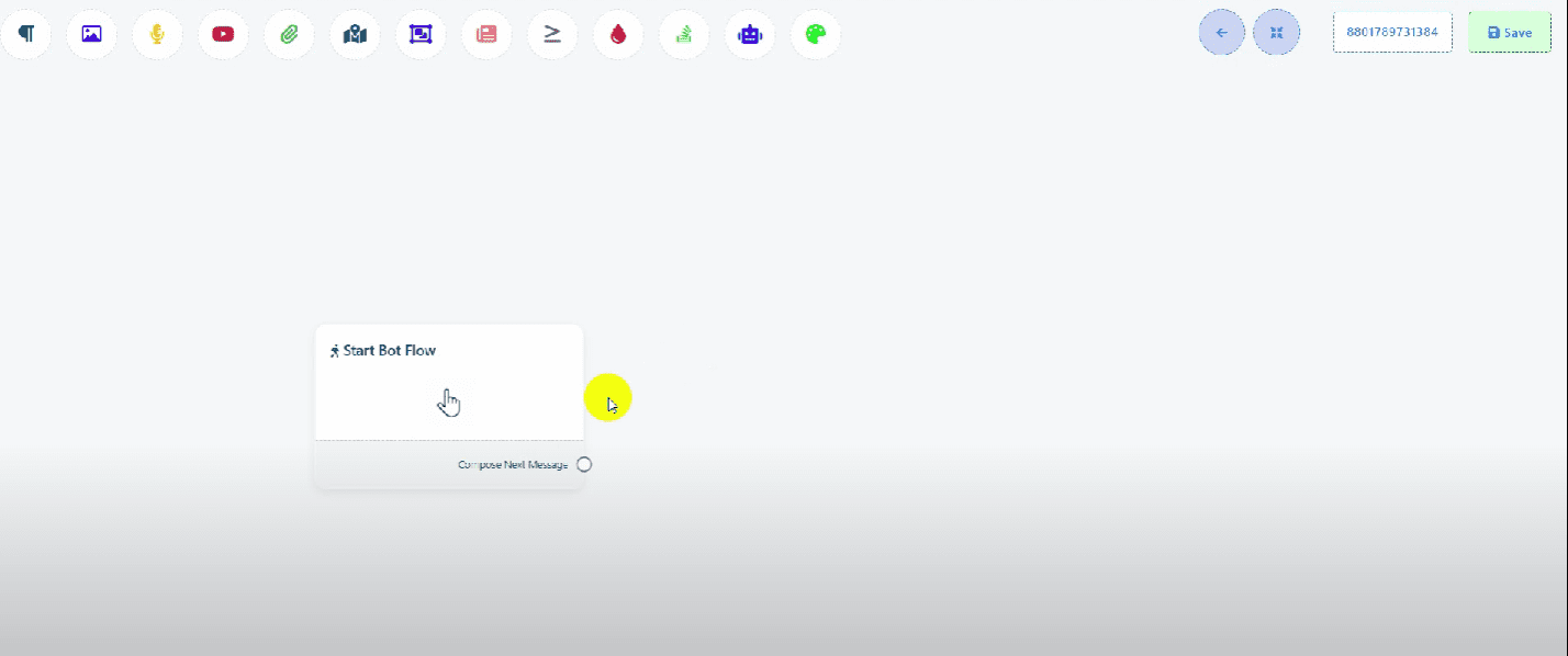 Double-click on the start bot flow and enter trigger keywords. Give a name to the bot flow and save it.