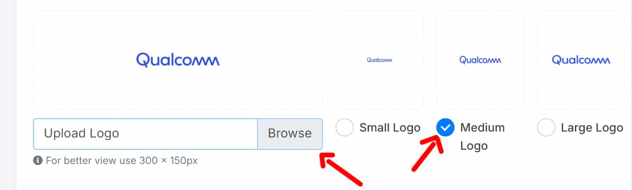 Click on the “Upload Logo” button. Select the logo file from your computer and adjust the size as needed to ensure it displays correctly.
