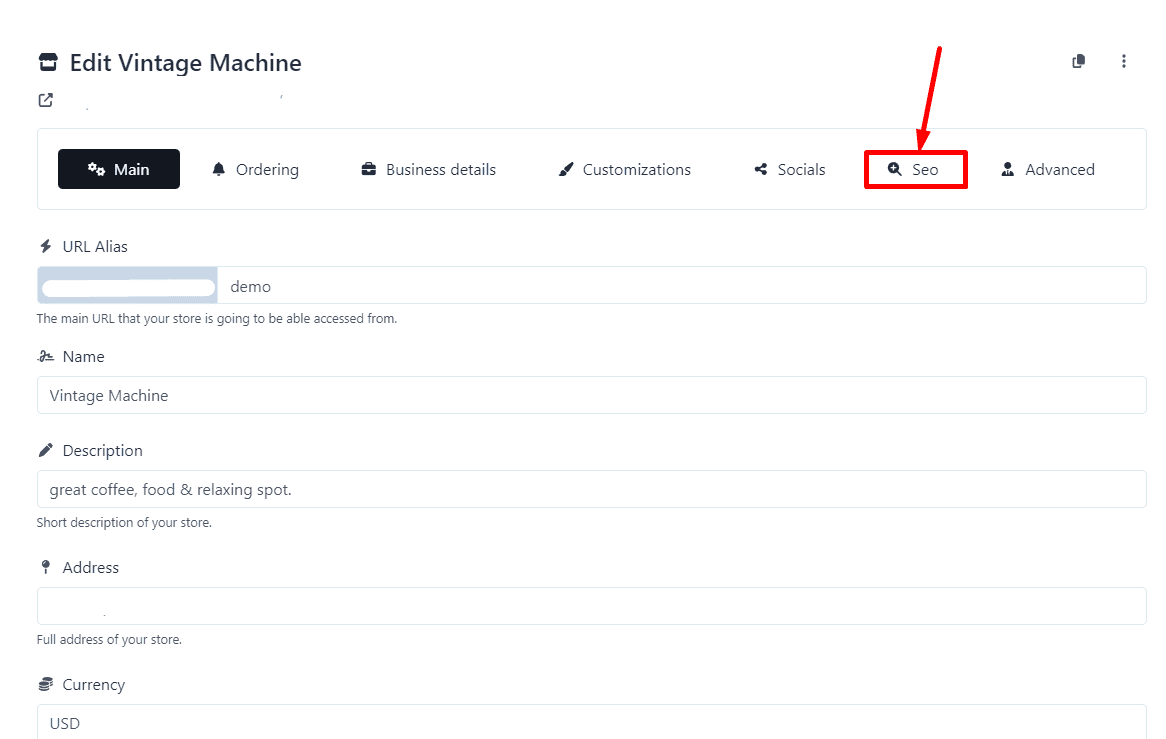 3.- Find the SEO Option. Within the editing page, locate the SEO option.