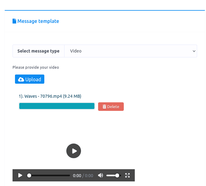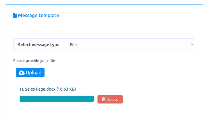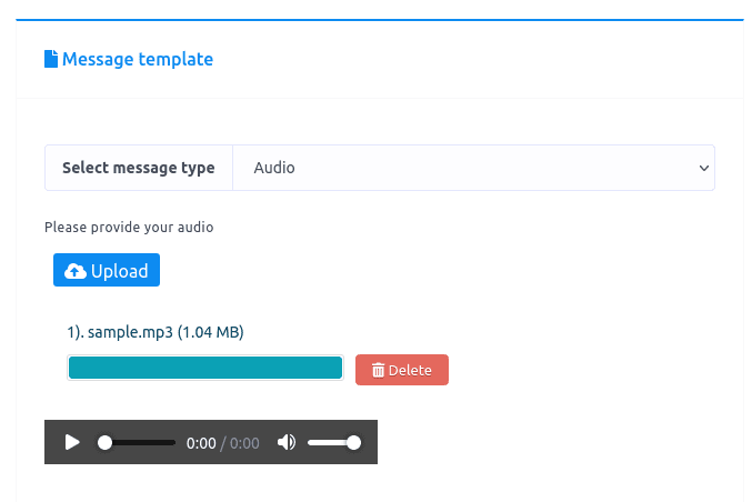 If you select image, audio, video, or file as the message type, an upload button will appear. Upload an image, audio, video or file for the respective message type.