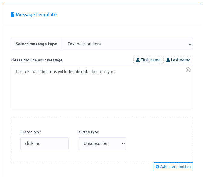 You can also select the Unsubscribe button type from the drop-down menu. When a user clicks on this kind of button, he or she will be unsubscribed.