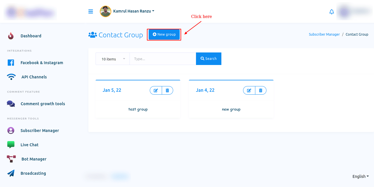 To create SMS and Email broadcasting campaigns, you need to create contacts to send them. To create contacts, first, you need to create a group. Here are the steps for both.
