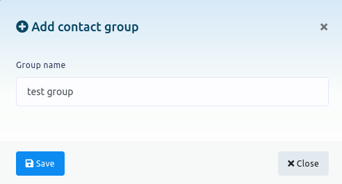 3. Fill the form. You will open a modal form. Write a name for the group on the corresponding field and click the save button. A success message will appear. Click on the close button to close the form. Done! Your new group will appear in your list of groups, where you can also edit or delete