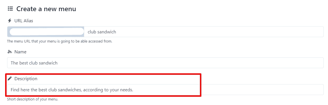 3.- Fill in Menu Details. Enter the name of your menu, which will be part of its URL.