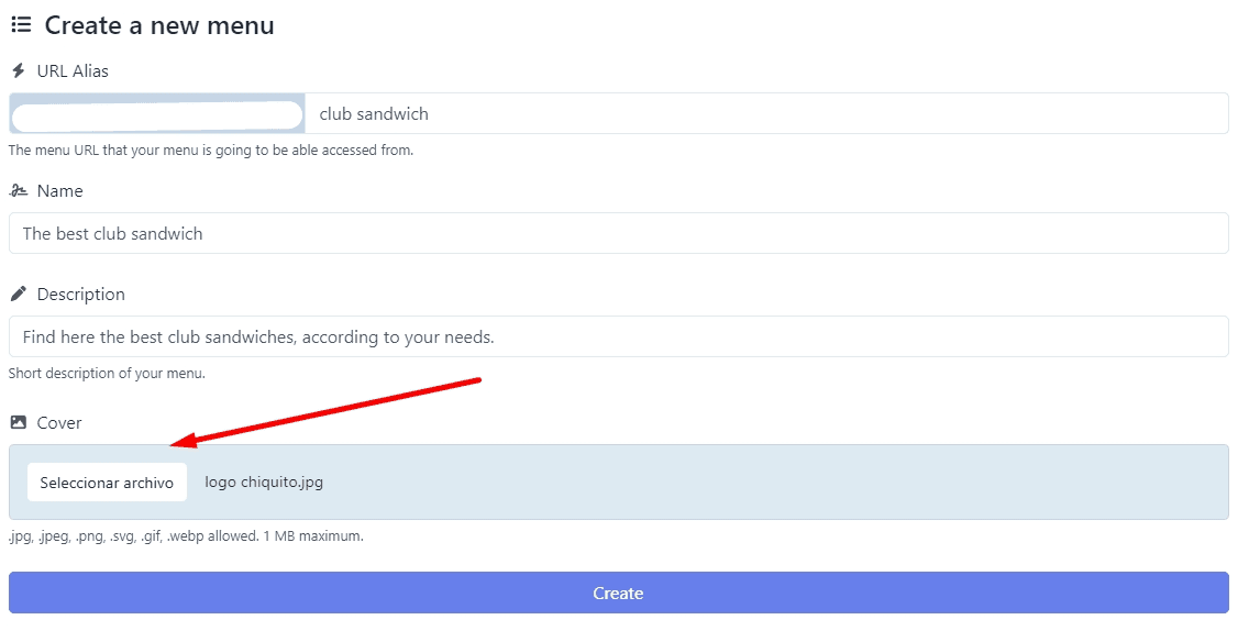 4.- Click “CREATE”. Once you’ve entered all the necessary information, click on the “CREATE” button to generate the menu.