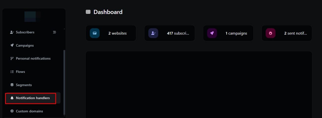 2. Go to the Notification handler section. You will find it in the dropdown menu on the left side of your screen.