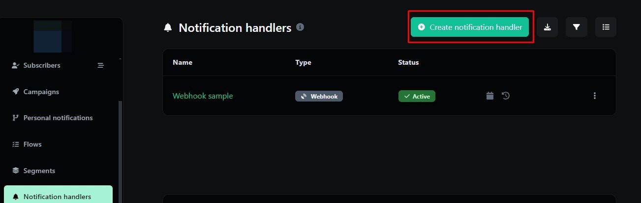 3. Click on the Create Notification handler button. You will find it in the top right side of the screen.
