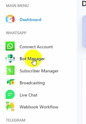 Go to the Bot Manager from the BotCommerce dashboard.