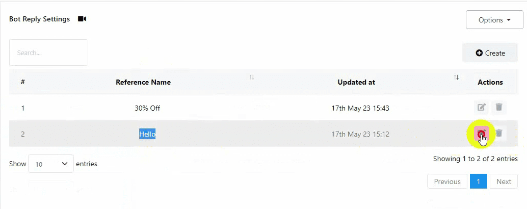 From the Bot Reply section, select the bot you want to edit.