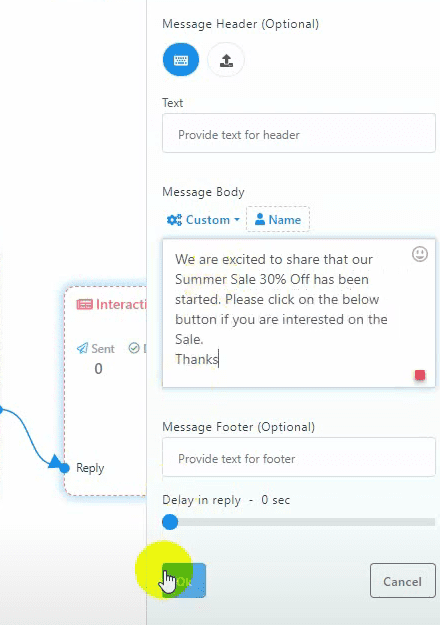 - Select the button type as Postback.