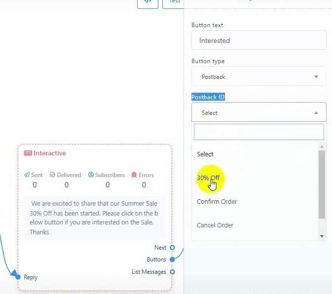 - Choose the postback ID from the list.