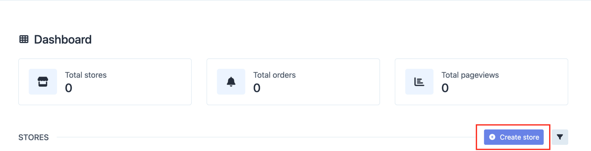 1. Access the app. Click on the ‘Create store’ button in your Dashboard.