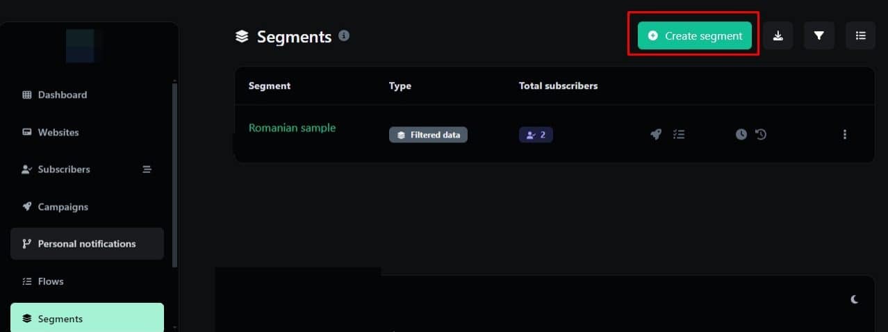 3. Click on the Create Segment button. You will find it in the top right corner.