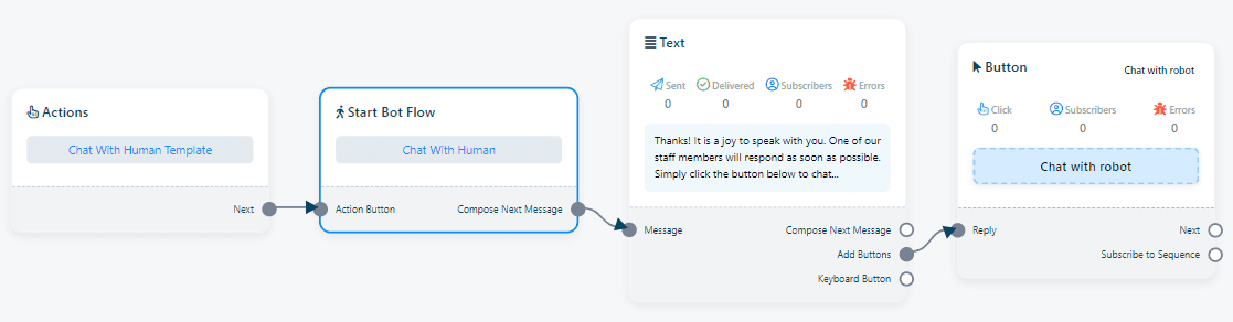 To customize the bot’s responses and set up interactions with human agents, follow the steps outlined for each action button. By tailoring these buttons, you can ensure smooth transitions and provide users with a seamless experience tailored to their needs.