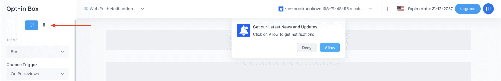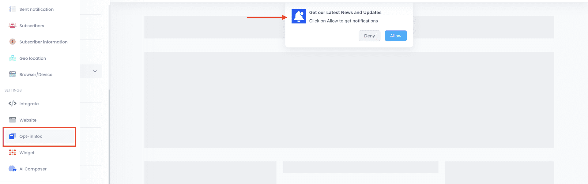The opt-in box is the first step in building your push notification audience. It appears as a small prompt encouraging visitors to subscribe, allowing them to receive updates, promotions, and personalized notifications.