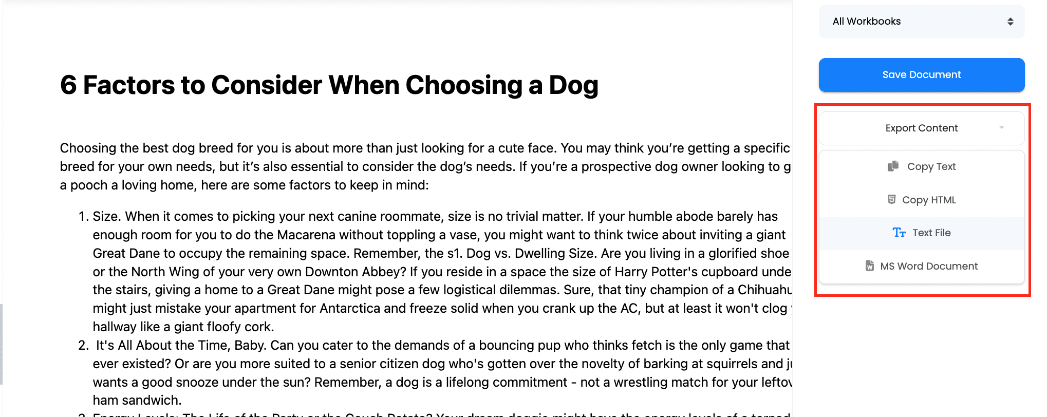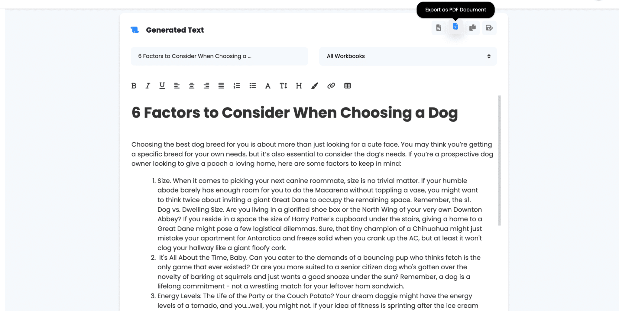 5.- Save or export your text. To export your edited text, click on the ‘Export’ button at the top right corner and select the desired format.