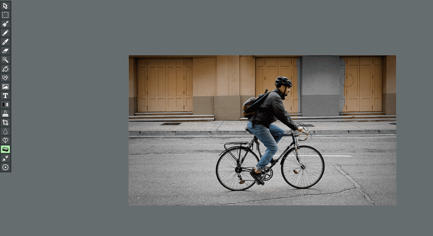 Use the Desaturate Tool: Selecting it will transform your cursor into a brush that you can place on the parts of your image you want to desaturate.