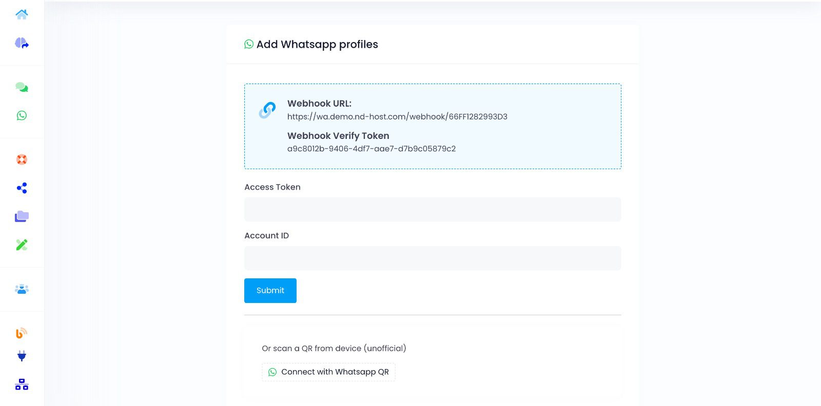 If you have doubts about how to connect a WhatsApp account and where the token needs to go, click here.