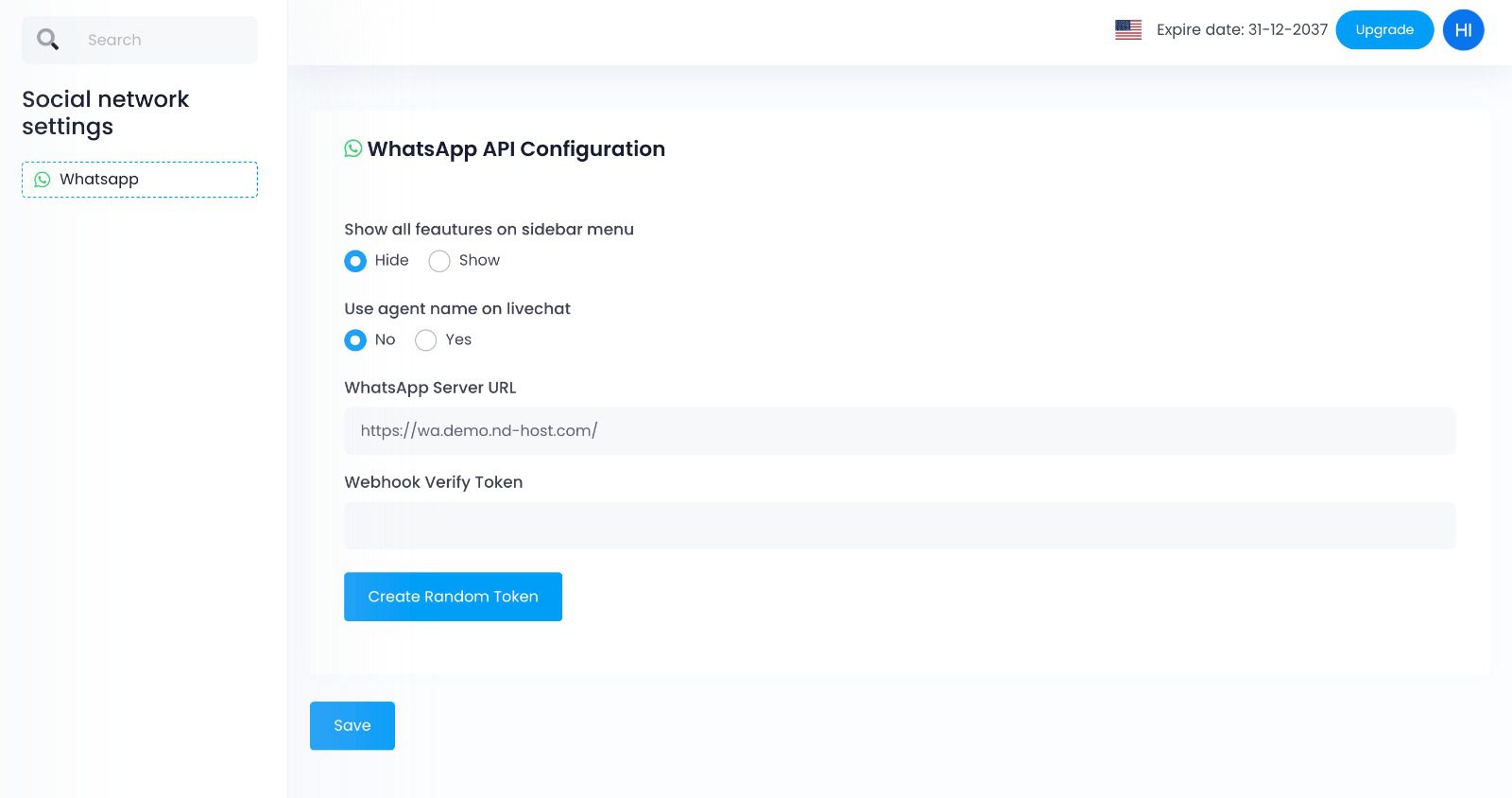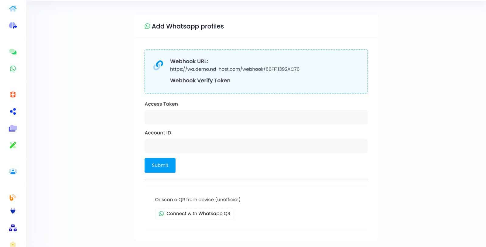 2. WhatsApp Server URL: Paste the subdomain you generated for WhatsApp when filling out your Activation Form.
